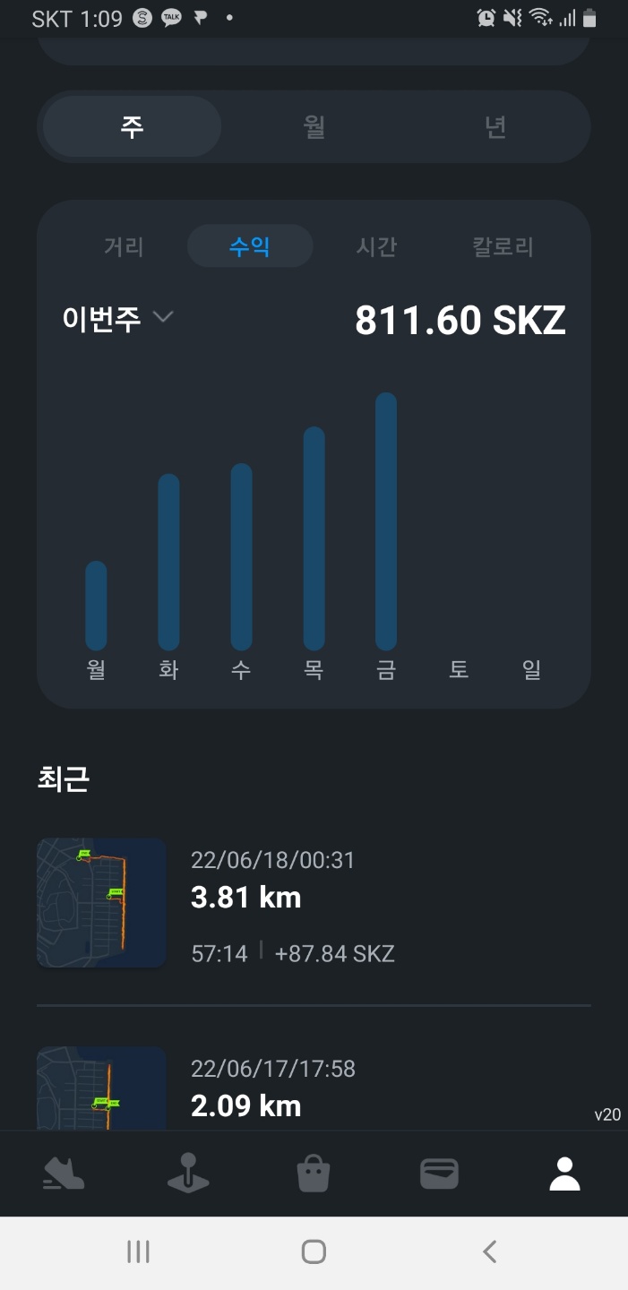 한번운동할떄 이제는 거의 주마다 1000skz 이상 채굴하는것 같습니다. 물론 테스트라 스태미나를 계속해서 채워주기 때문에 이런부분이라고 생각하지만 신발이없다면 워킹말고 볼트나 런닝 하루에 한번씩 운동하니깐 부담이없고 채굴량은 높아지니깐 밸런스는 지금이 황금 밸런스이며 채굴량도 잘나눠젔다고 생각하는 부분입니다.